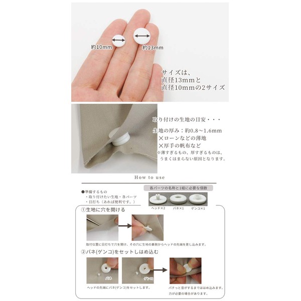 MYmama 10 Pairs Tool Free Plastic Snap Button 10mm Snap Button One Touch (White)
