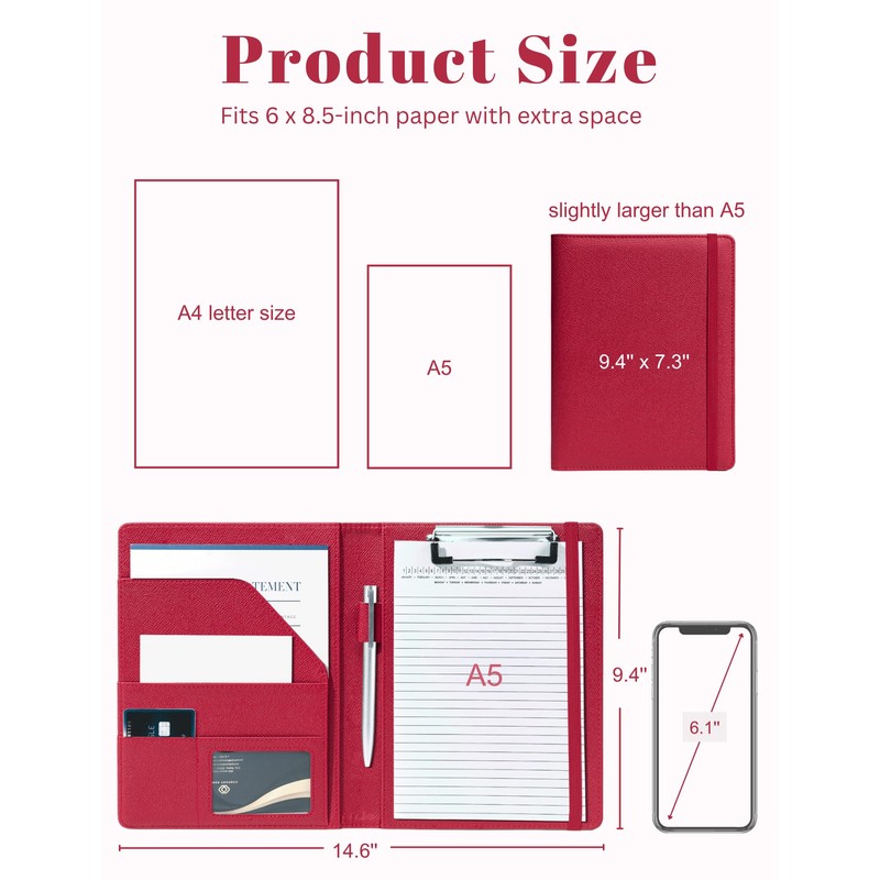 - Versatile Storage: With multiple interior pockets and slots, this portfolio folder with clipboard keeps business cards, IDs, documents, and a pen organized and easily accessible for both daily use and business travel. Also, a strong clip ensures your papers stay secure and neatly stacked.