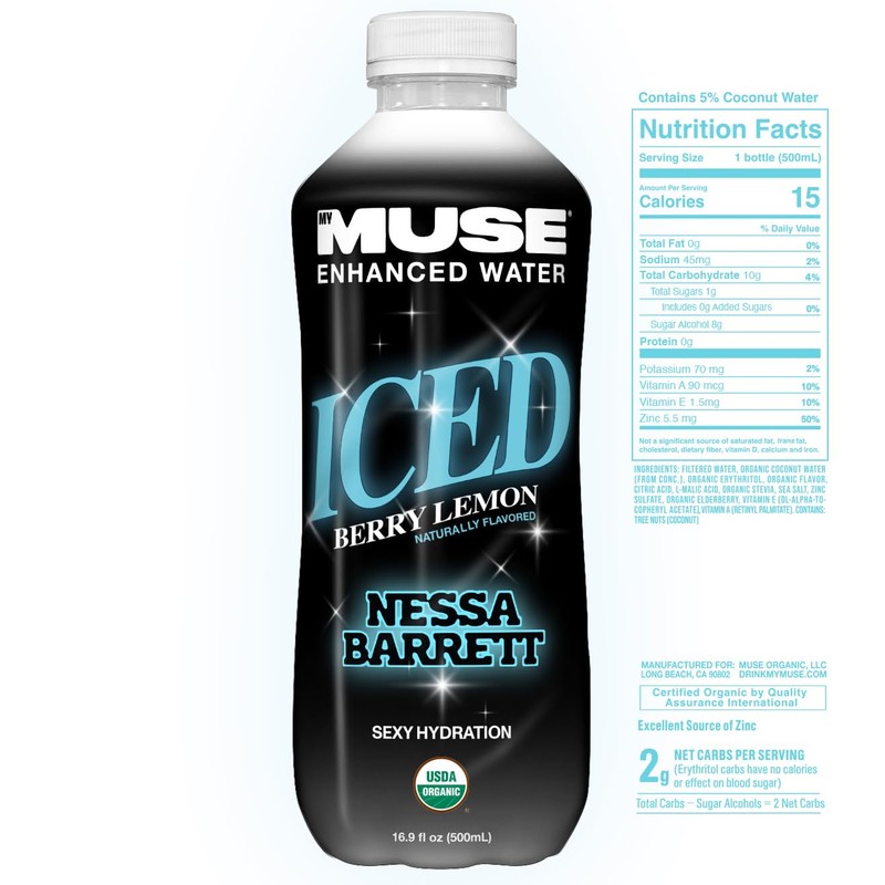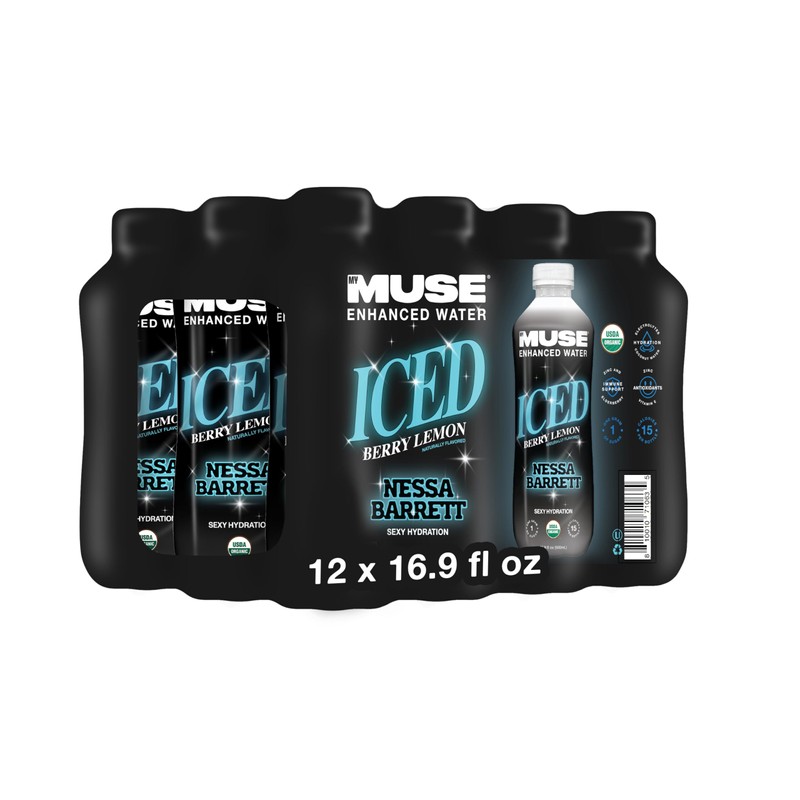 MyMuse Organic Enhanced Flavored Water, Ice Berry Lemon, 16.9 Fl Oz Bottle (12 pack), 1G of Sugar, Immune Support with Zinc & Elderberry, Antioxidants Vitamin E, Low Calories, USDA organic