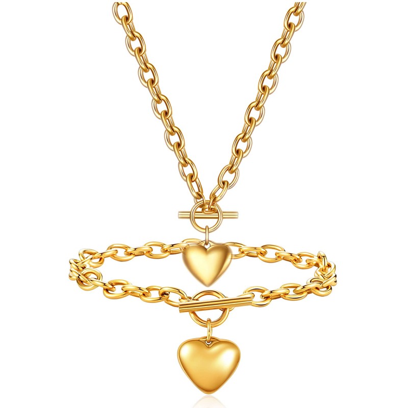 - Heart chain bracelet and necklace:Unique initial bracelet and necklase set express that you are one and only, Engraved your lover’s initial name, a great reminder gift let her know she's always deeply connected to you