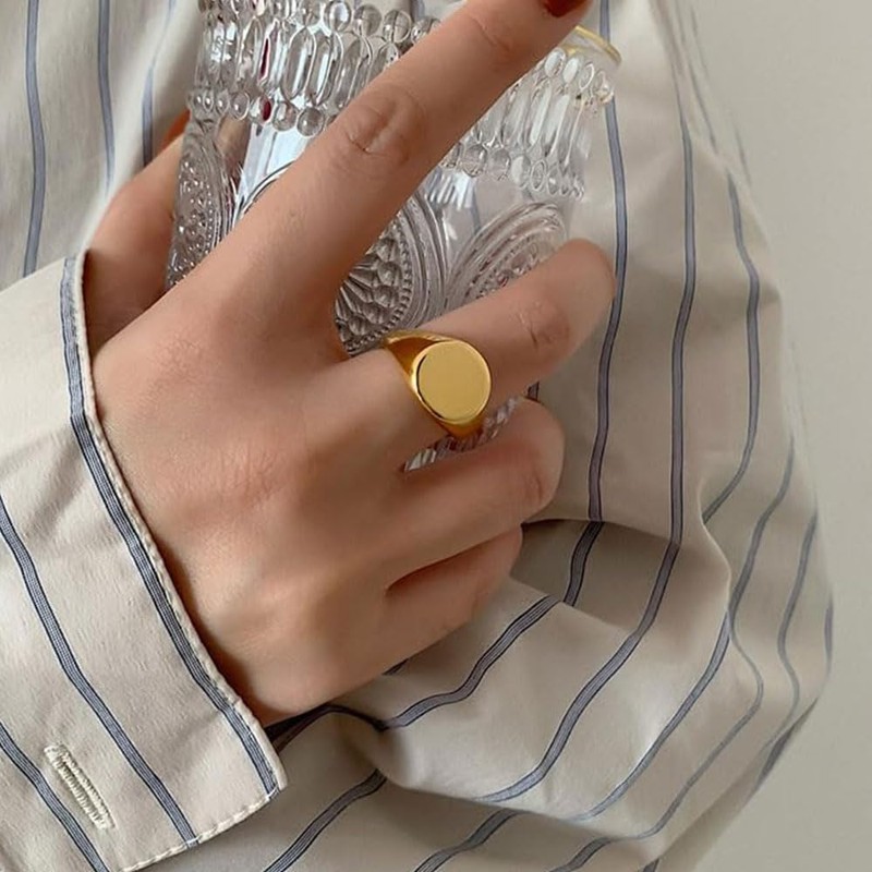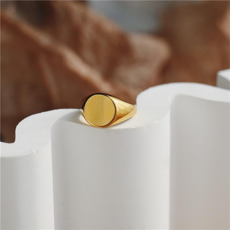 MYNENEY Stainless Steel Round Shape Classical Simple Plain Wedding Engagement Statement Pinky Band Signet Rings for Men Women Size 4-15 (Gold, 7)