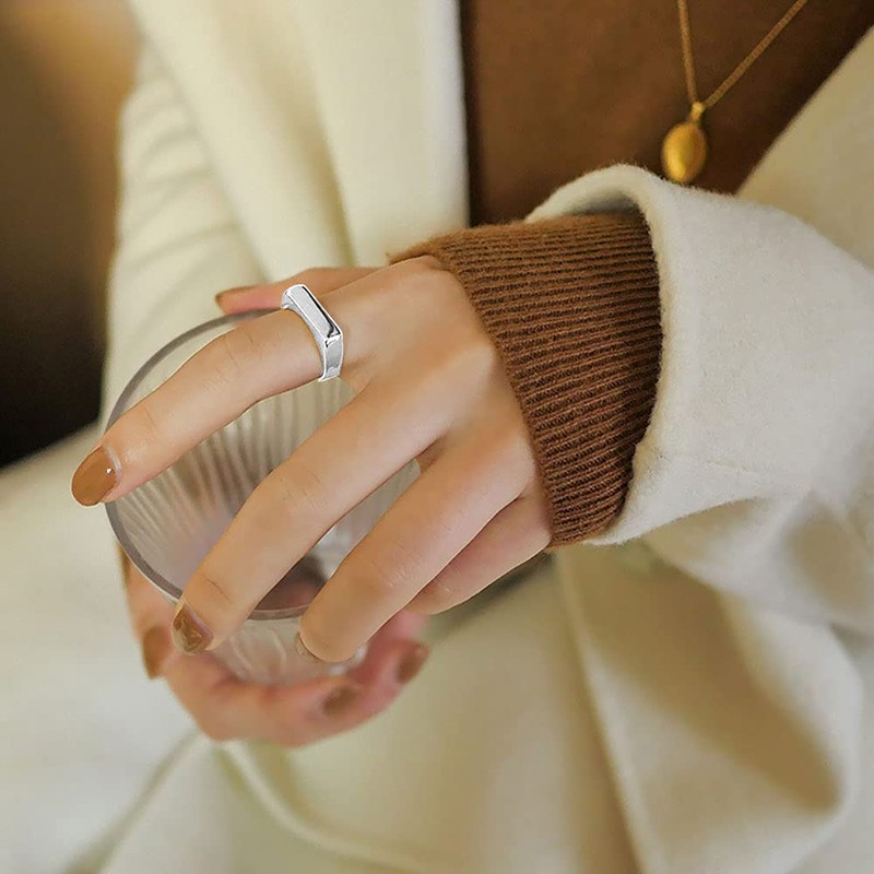 MYNENEY Stainless Steel Square Shape Signet Style Classical Simple Plain Wedding Engagement Statement Ring (Geometrical Silver, 9)