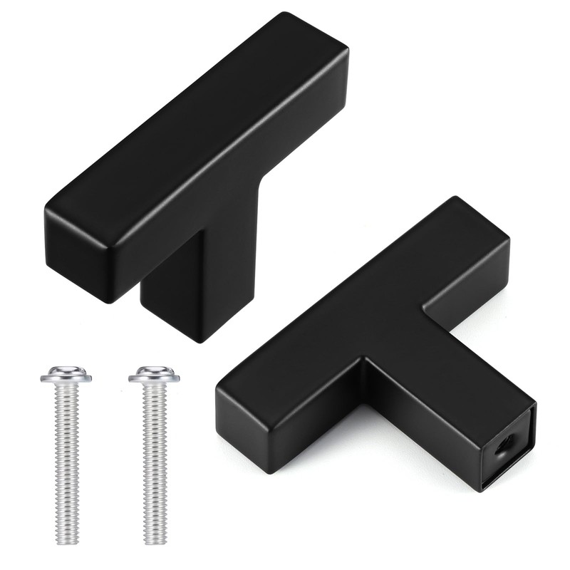Mynoozi 2Pcs Square Cabinet Knobs,T-Shaped Cabinet Pulls,Stainless Steel Square Single Hole Handle(Black)