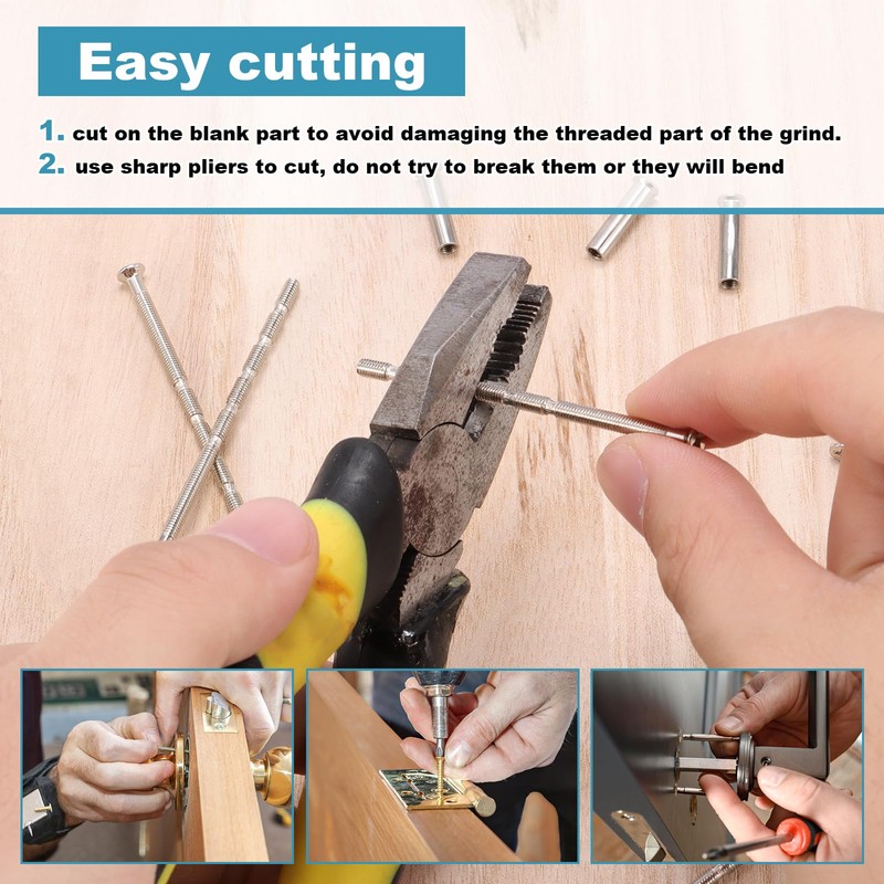 Mynoozi 30Sets M3 Door Handle Fixing Screws and Sleeves, Nickel Plated Adjustable Length Fixing Sleeves Screws Bolts Nuts for Door Handle Cabinet Drawers Hardware Handle