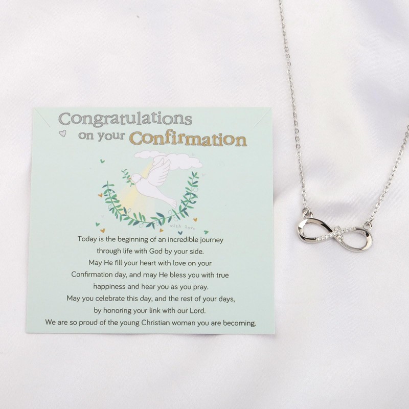 - ✭Message card reads:Congratulations on your Confirmation.Today is the beginning of an incredible journey through life with God by your side. May He fill your heart with love on your Confirmation day, and may He bless you with true happiness and hear you as you pray. May you celebrate this day, and the rest of your days, by honoring your link with our Lord. We are so proud of the young Christian woman you are becoming.