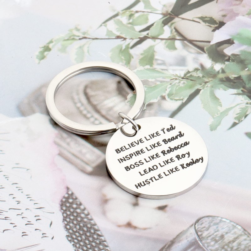 - ❤TV Show Keychain❤This keychain with design hand engraved-Believe Like Ted,Inspire Like Beard,Boss Like Rebecca,Lead Like Roy,Hustle Like Keeley.