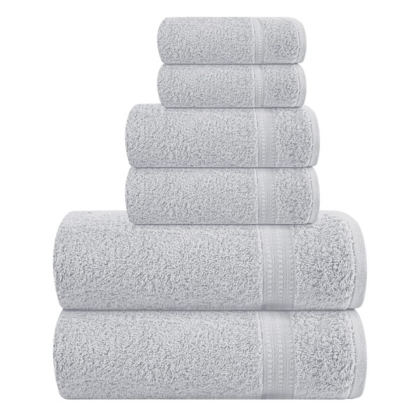 MyOwn 6 Piece Towel Set, 100% Combed Cotton - 2 Bath Towels, 2 Hand Towels, 2 Wash Cloths - 500 GSM Luxury Hotel Quality Ultra Soft Highly Absorbent Towel Set for Bathroom - Light Grey
