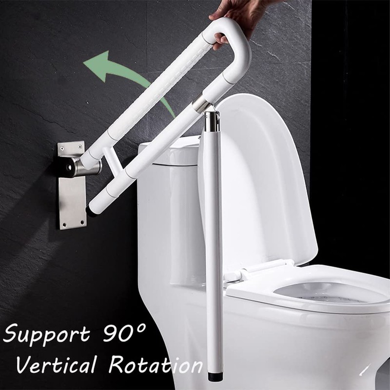 - ✅【Flip Up Desigh & Space Saving】The folding grab bar is space saving with the flip up bar design. It is 90°vertical rotation. Flip up it and storage to the wall, save much space in the bathroom when not in use