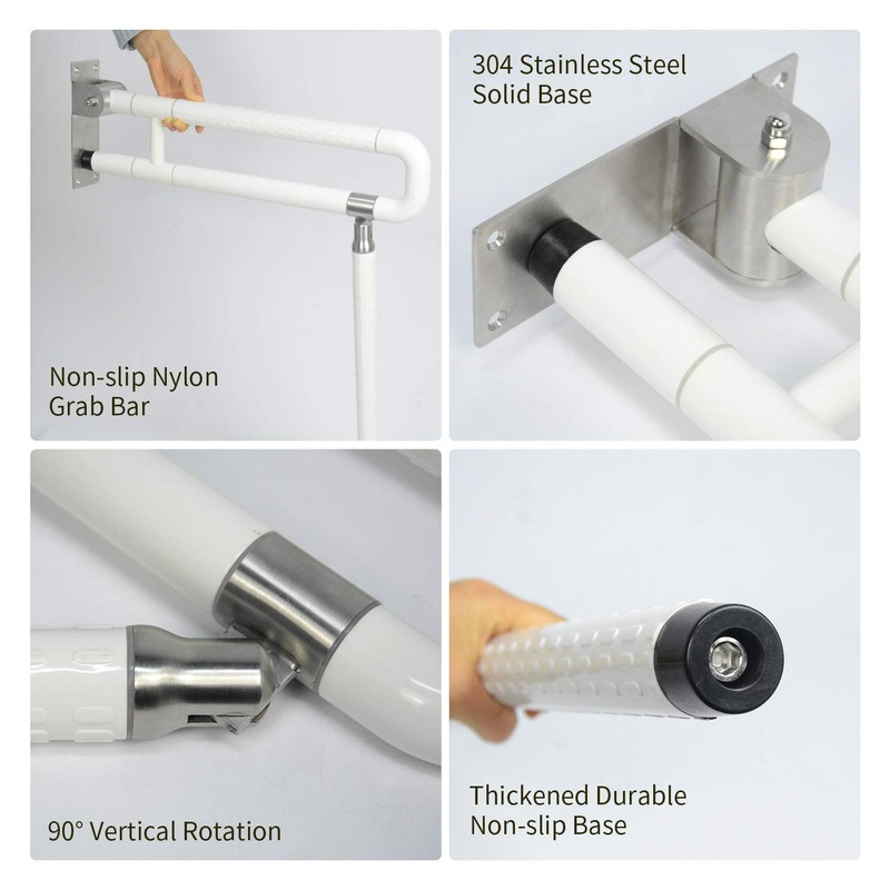 - ✅【High Quality & Durable Material】This toilet grab bar is made of rust-proof 304 stainless steel of inner pipe, and thicked non-slip nylon exterior material, the bar is durable and stable to support 450lbs