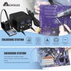 **Product Features:** It has independent plugs for hot air handle and electric soldering iron, independent switches, independent of each other, easy to replace, large double screen blue highlight display, dual digital display button temperature adjustment, magnetic induction sleep bracket ( hot air handleis not in use, place it in On the bracket, the temperature drops to 100 degrees, it automatically enters the dormant state, and keeps the last temperature setting.) The electric soldering iron will automatically enter the dormant state after 10 minutes of inactivity. The hot air handle rotates to blow out the wind, the air volume is large and the wind is soft, it will not burn the components, and the heat is evenly distributed. **Hot air handle Product parameter:** Working Voltage: AC110V ± 10% 60Hz Output Power: 750W Temperature Range: 100°C~480°C Temperature Stability:±2℃ Air Flow: 120L/min (max) **Soldering iron Product parameter:** Working Voltage: AC 110V 60Hz Output Power: 70W Temperature Range: 200°C-480°C Temperature Stability: ±1°C Soldering Iron : ESD design Heater Material : Ceramics **Package Content:** 1 x Soldering Station,1 x Soldering Iron handle 1 x Manual、4 x Nozzle、1 x Connector line 1 x Hot Air handle handle、1 x Stand(Color style is randomly sent) 1 x soldering iron clean ball、3 x anti-static tweezers 1 xIC puller、1 x rosin、1 x fly line、2 x solder wire 1 x suction tin wire、10x tip、1 x sponge **How to use:** 1\. Clean the electronic components to be soldered. 2\. Once iron reaches temperature (not too high, recommend 300℃). 3\. Apply a little solder to the heated iron tip to prevent oxidation, then rub the iron tip to evenly extend the solder to the surface of the iron tip. 4\. Start to solder.