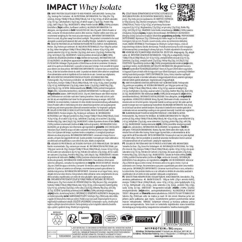 Myprotein Impact Whey Isolate Unflavoured Proteins Supplement, 1 kg