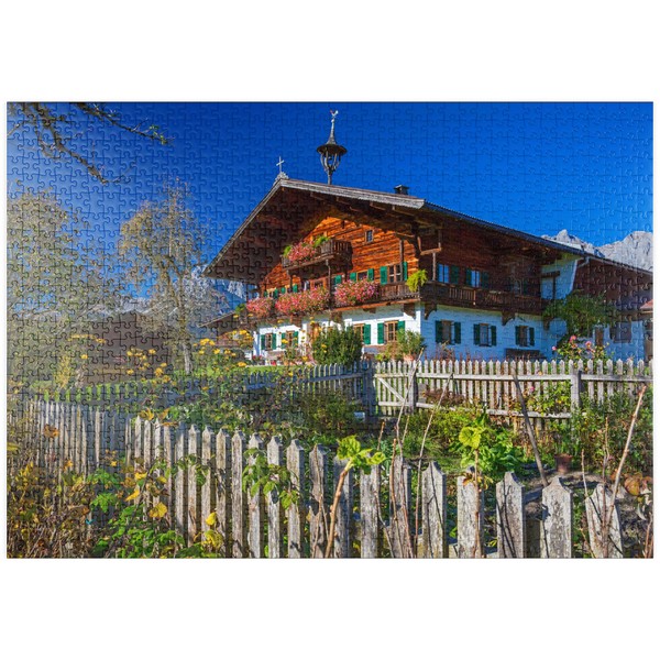 MyPuzzle Farmhouse Against Kaiser Mountains (2344 m), Reith bei Kitzbühel, Austria - Premium 1000 Piece Puzzle - MyPuzzle Special Collection by Puzzle Galaxy