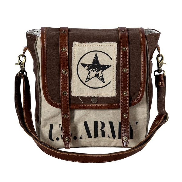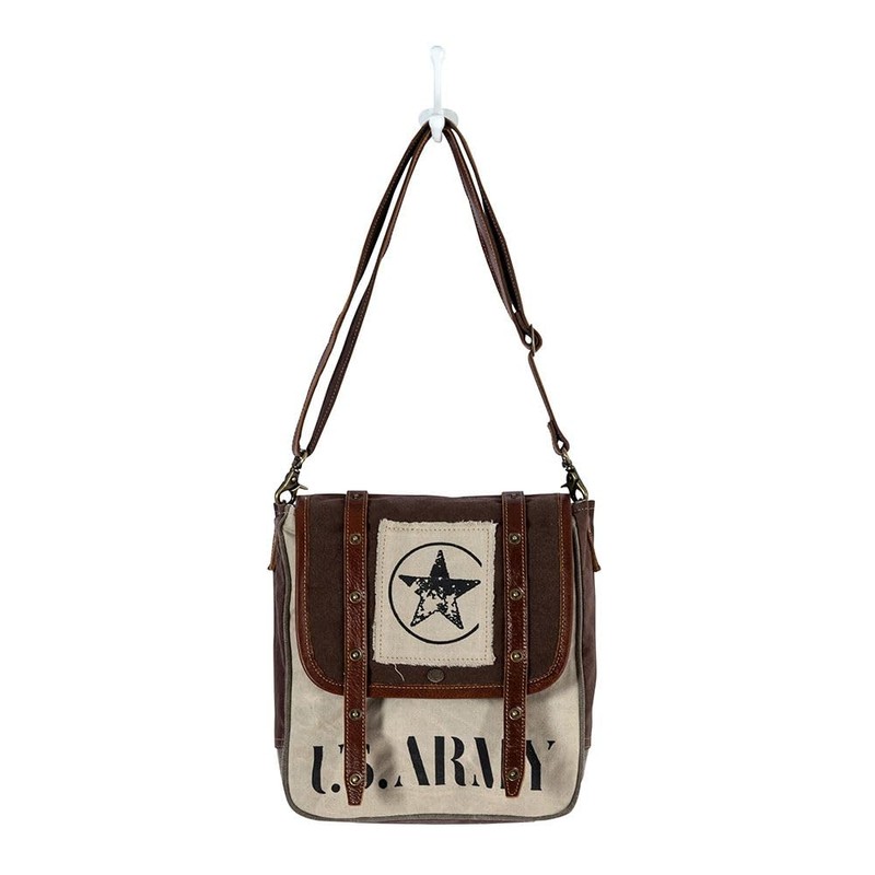 Myra Bag Shoulder Bag for Women - Western Upcycled Canvas and Leather Crossbody Bag - Army Motif