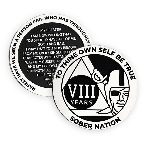 MYRECOVERYSTORE Silver and Black Pirate Alcoholics Anonymous AA Chip w/Coin Capsule AA Yearly Medallion 1-50 Years