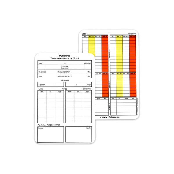 MyReferee Referee Game Note Cards Football Pack of 100 New Generation Spanish