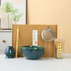 Myrthra 5PCS Matcha Whisk Set, Matcha Bowl with Spout, Bamboo Whisk, Bamboo Scoop, Ceramic Holder and Stainless Sifter for Tea Matcha Lover (Deepblue)