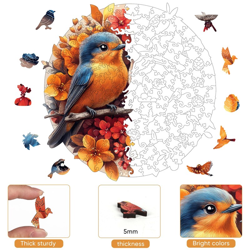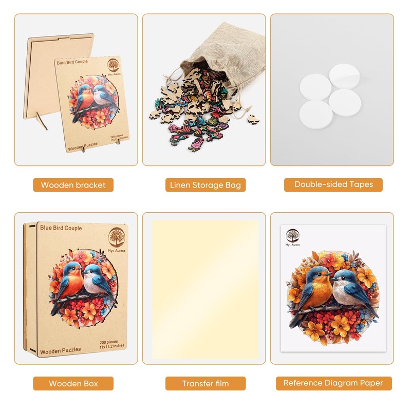 Mys Aurora Wooden Puzzles for Adults, Robin Bird Couple Jigsaw Puzzles 200 Pieces, 11 x 11.2 Inch, Medium, Unique Shaped Round Blue Birds Puzzles for Adults and Kids, Family Game
