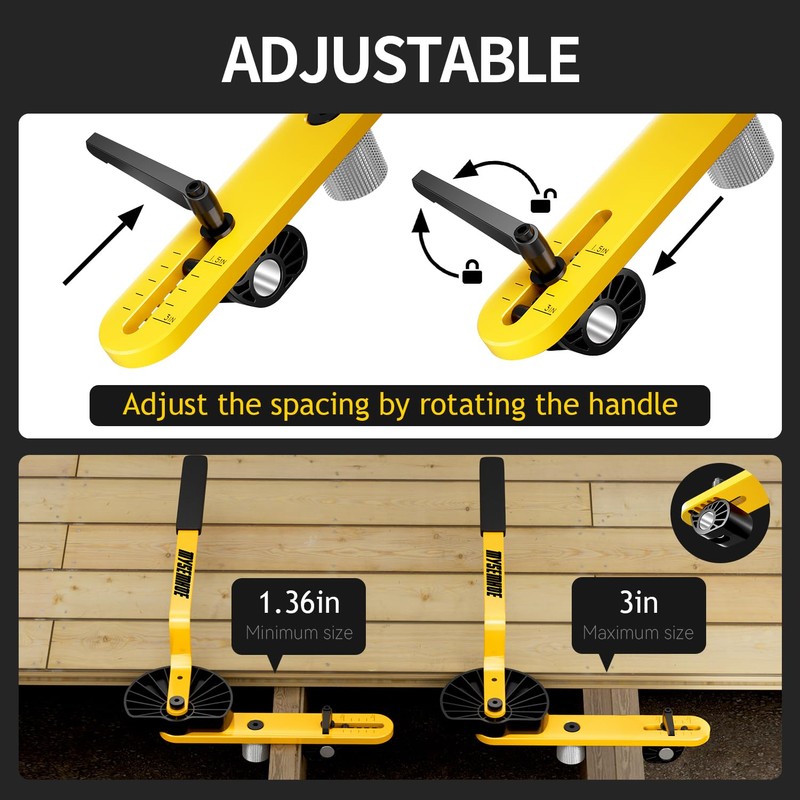 - Optimized for Efficiency:Our deck straightening tools have adjustable joist spacing (1.36" - 2.62" in locked condition and 1.5" - 3" in released sag condition), allowing adjustment based on actual joist spacing needs. Enable its pallet wheels to be straightened at multiple angles to meet the strict requirements of the construction site.