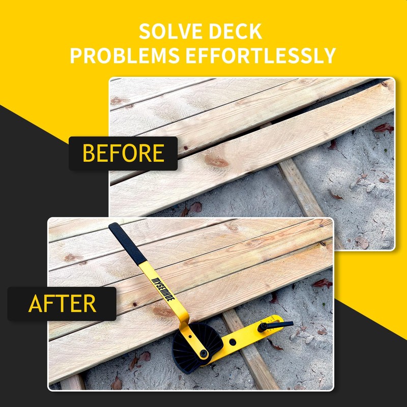 - Fix Gaps, Warps & Misalignments in Seconds: Tired of stubborn gaps and warped boards ruining your deck? The MYSEMHOE Deck Straightening Tool delivers millimeter-precise alignment in seconds, making your deck achieve consistent alignment!