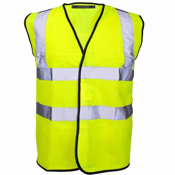 MyShoeStore Hi Viz High Vis Visibility Vests 2 Band Reflective Security Work Contractor Safety Vest Waistcoat Jacket Top (Yellow, S)
