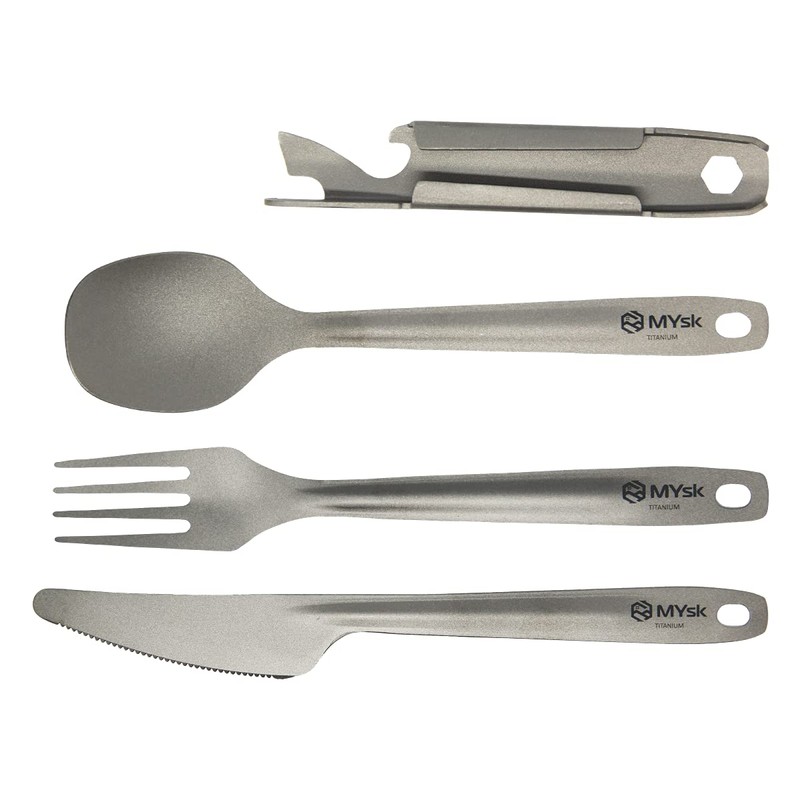 - All cutlery can be stored in the holder for compact portability. It can also be used to prevent loss. The holder includes a bottle opener, can opener, pull tab, and a hex wrench (M4) function that makes it perfect for small occasions. Comes with a dedicated storage bag for easy carrying, preventing scratches and scuffing during packaging