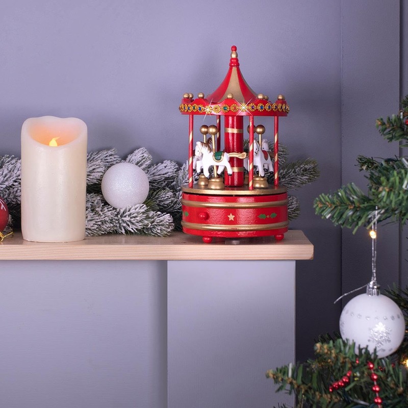 mysmartbuy.com Red & Gold Wooden Carousel Music Box Christmas Decoration – Fu...
