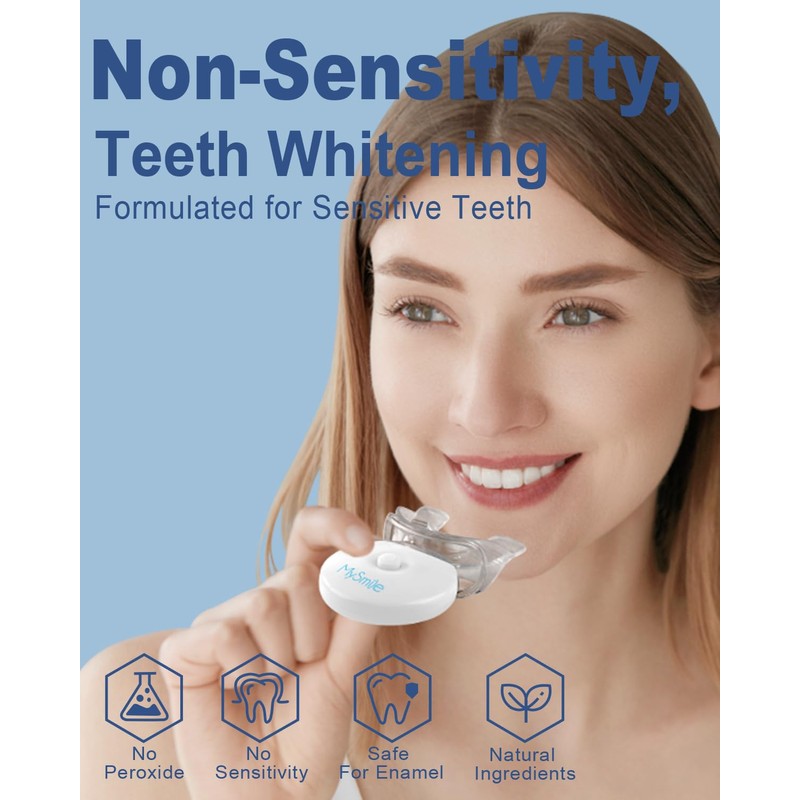- Professional Whitening Light - Our LED teeth whitening light comes with 5 LED bulbs for total and complete teeth whitening. MySmile proprietary teeth whitening serum keep enamel-safe whitening ingredient , Patented light will make you get 3X LONGER LASTING results without sensitivity than other brands.