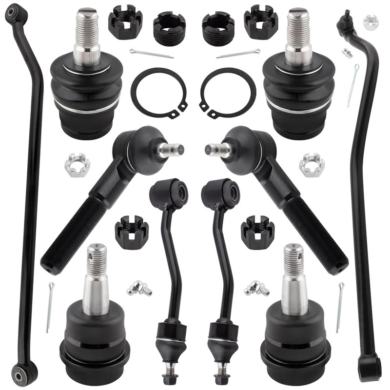 • [Suspension Kit Buyer's Guide]: A Suspension Kit is basically a collection of parts that are used to restore, replace, or modify a vehicle's suspension system.this suspension auto parts directly replaces the original assembly on specific vehicle applications,easy installation and steering alignment.A complete suspension kit typically includes the following parts: control arms, idler arm, pitman arm, tie rod ends,sway bar links, and ball joints.
