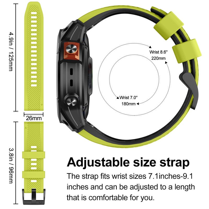 - Compatible models: This Soft Silicone Band compatible with garmin fenix 7x, fenix 7x pro, fenix 6x, fenix 6x pro, fenix 5x, fenix 5x plus, fenix 3, fenix 3hr, Descent mk1/mk2/mk2i, Tactix, D2 Delta PX, D2 Charlie smartwatches. If you're not sure about the size, please check your watch model and the compatible models we listed.