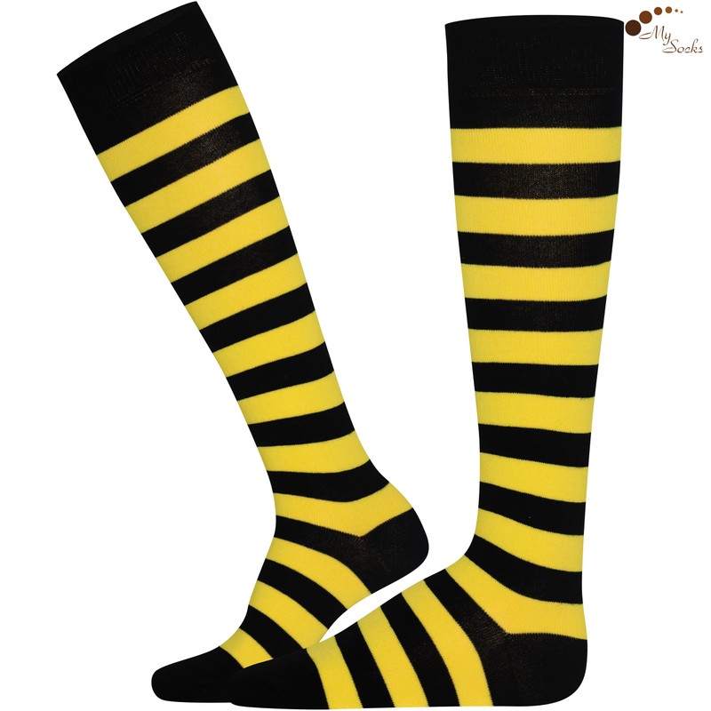 Mysocks Knee High Striped Socks for Men Women - Breathable Combed Cotton Seamless Toe Unisex Colourful Long Socks - Casual Bright Stripy Knee High Length Socks