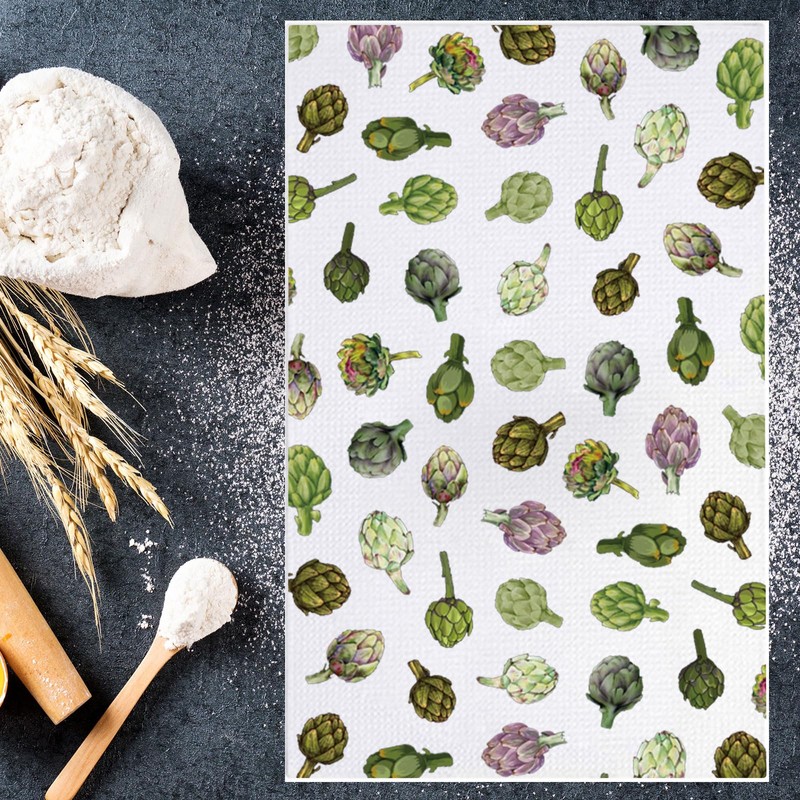 MYSOMY Artichoke Kitchen Towel Artichoke Lover Gift Artichoke Queen Gift Artichoke Botanical Dish Towel Artichoke Gardener Gift (greenpurple plant uk1)