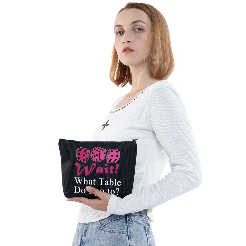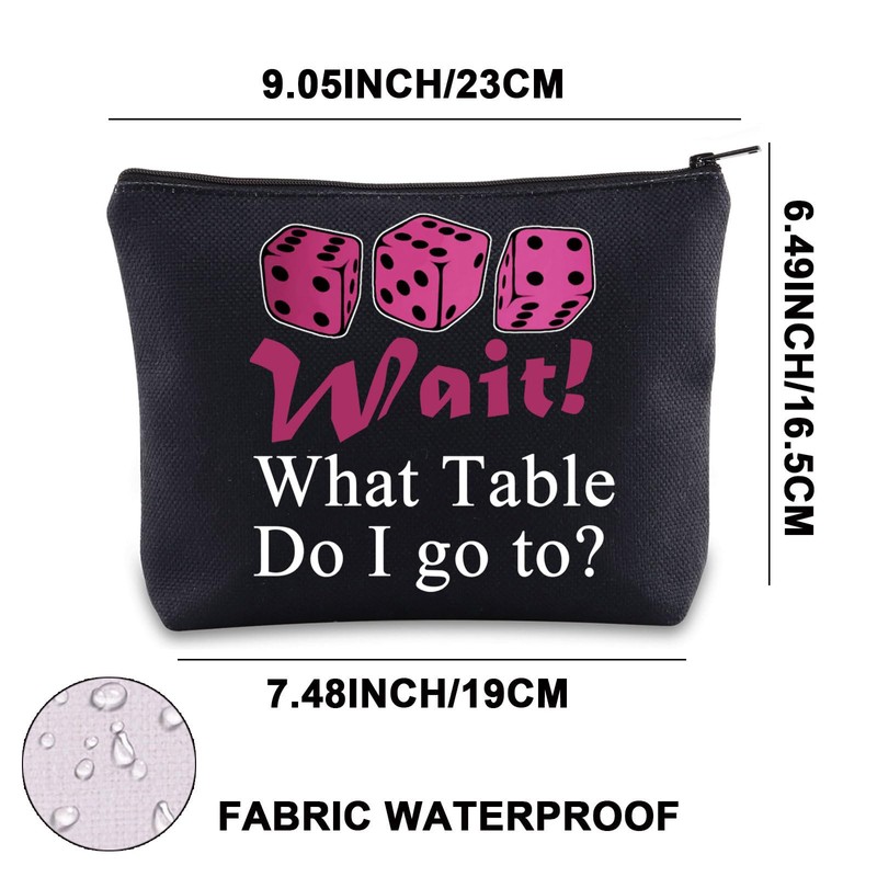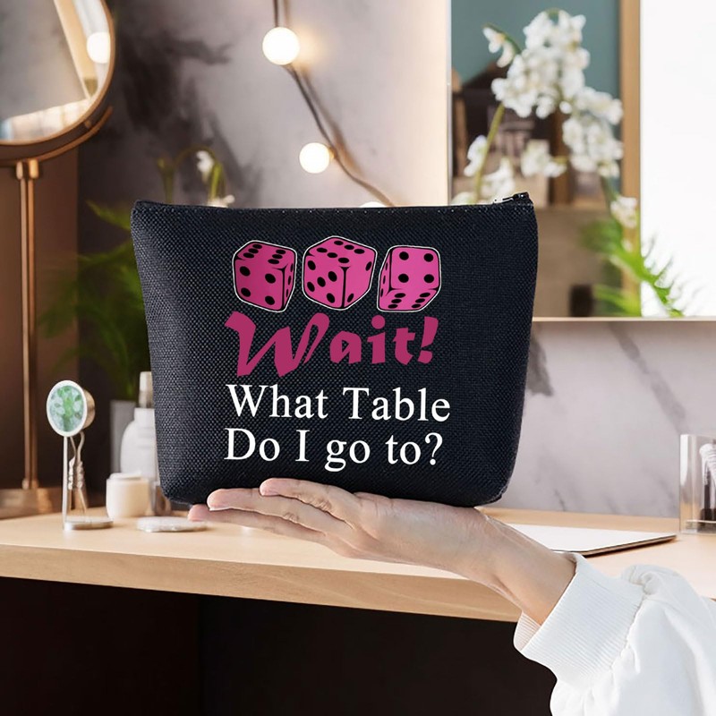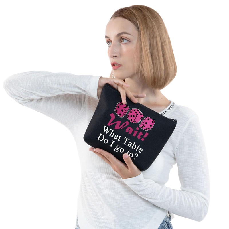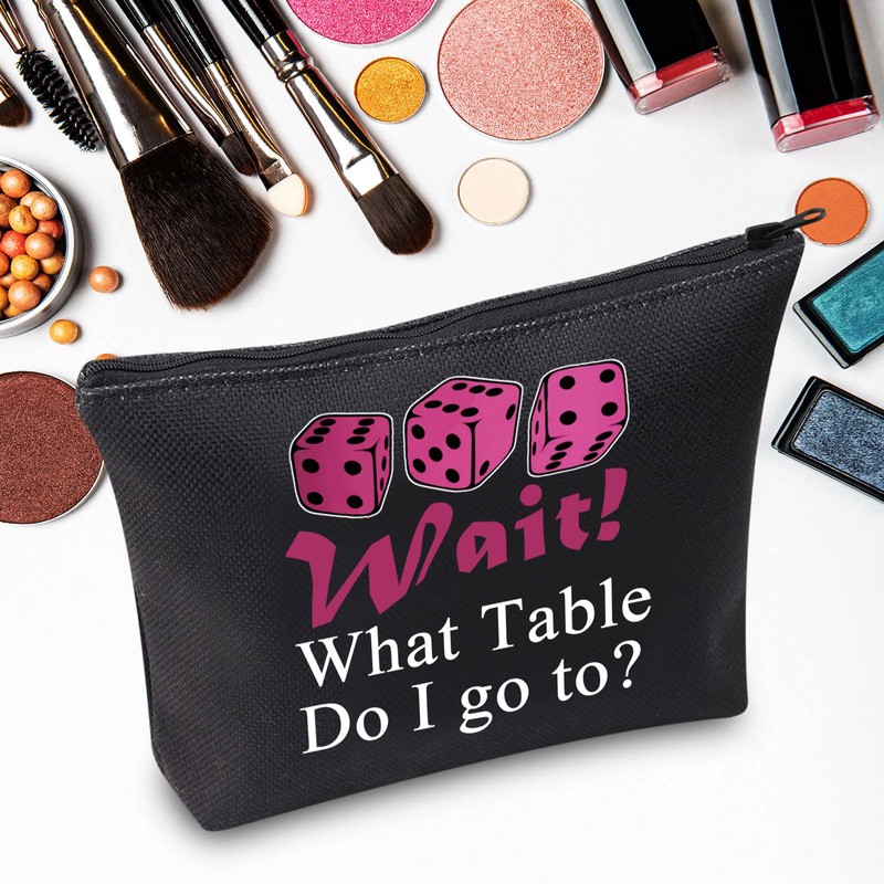 MYSOMY Bunco Game Makeup Bag Bunco Night Gifts Bunco Queen Gifts Wait What Table Do i Go to Bunco Party Bags Bunco Dice Bag (Wait What bl mb)