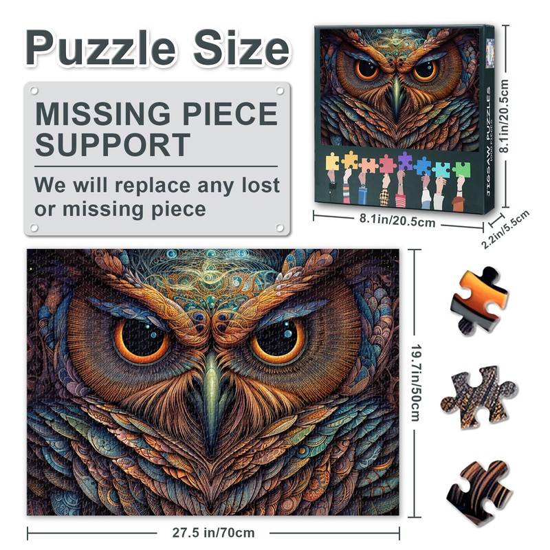 Mysterious Owl Jigsaw Puzzles Spiritual Shamanic Totem Animal, Protective Spirit Puzzle for Adults 1000 Pieces, Difficult Impossible Challenges Jigsaw Puzzles for Adults, 19.5 x 27.5 Inch