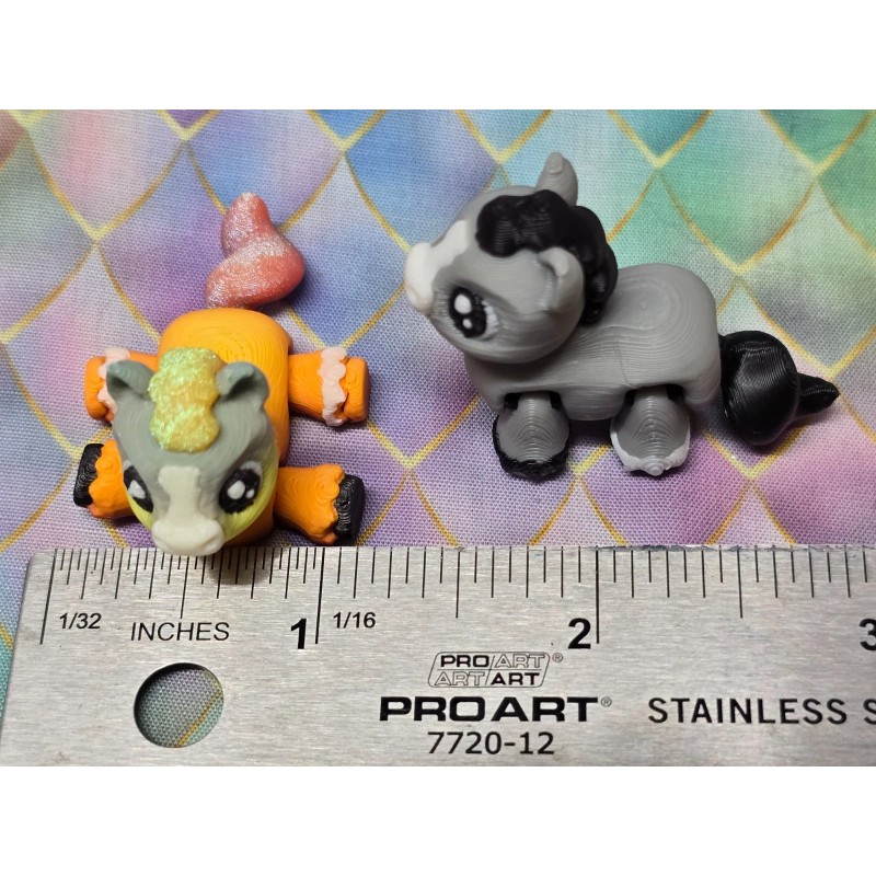 Tiny Gachas have little, most under 2 inches, full color PLA 3d prints, in this case it is Bay Pony, Dappled pony or unicorn, designed by Sugapaws 3D. Each of these little guys is ready to guard your dice, help relieve your stress or just sit on your desk or shelf and look cute. pick up one or a 5 pack! Check out my other listings for other Tiny Gachas as well as other bigger critters.