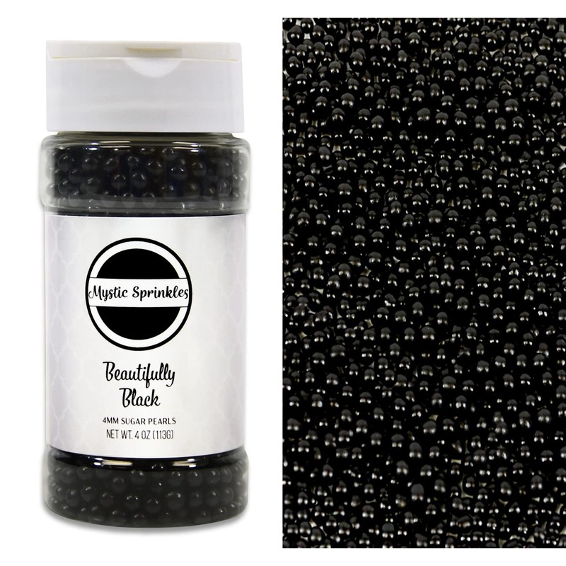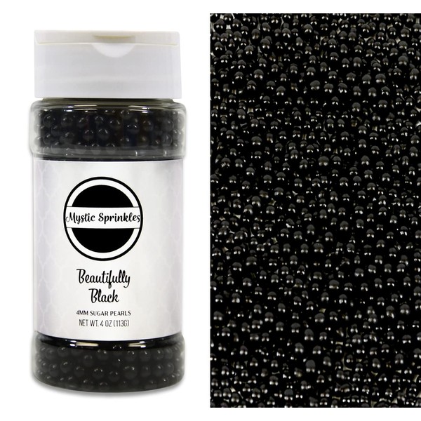 Mystic Sprinkles 4mm Sugar Pearls 4oz Bottles (Beautifully Black)