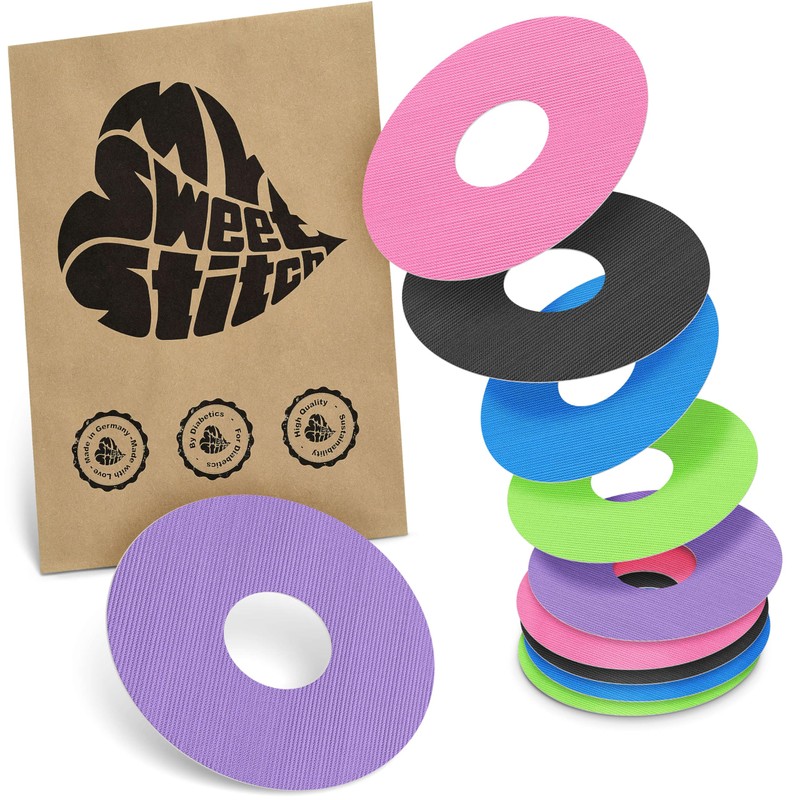 MySweetStitch | Patch for Freestyle Libre 3 Sensor Waterproof, Breathable and Skin-Friendly (10 Pieces) | Made in Germany | Outer Ø 60mm, Inner Ø 20mm | Rainbow