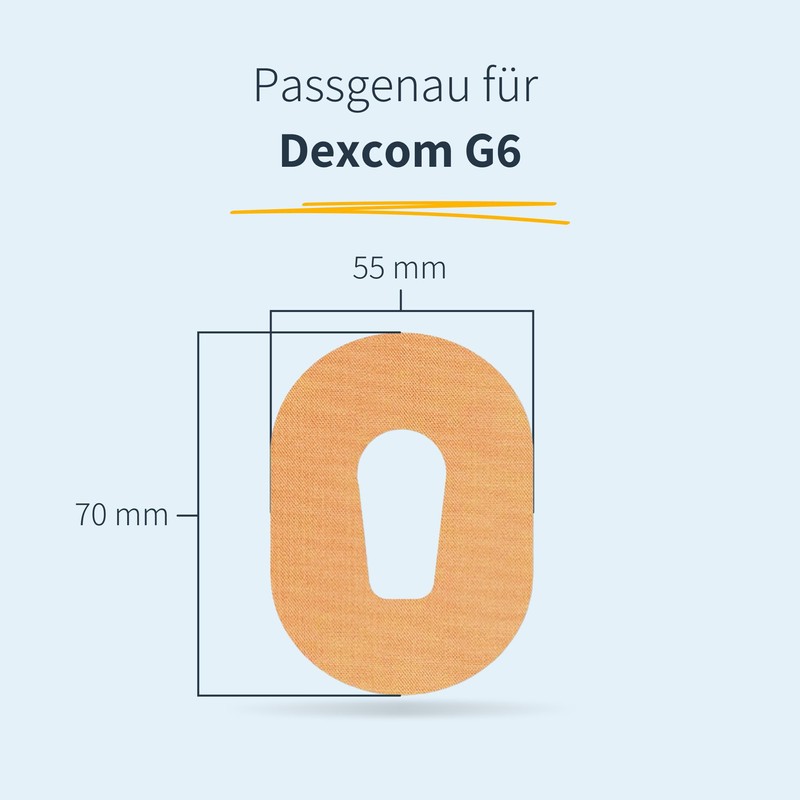 - Perfect fit plaster with easy application for Dexcom G6 sensors – perfect hold thanks to everyday plaster dimensions: outer diameter 70 x 55 mm, for the perfect fixing of your sensor