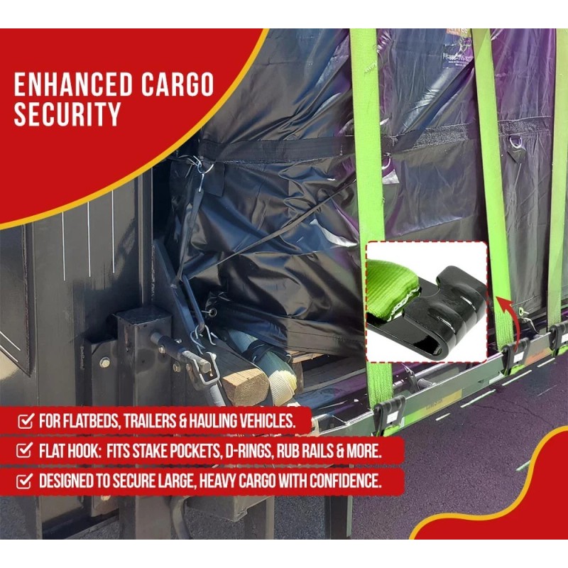 - Flat Hook: The winch strap comes with a flat hook for attachment to different anchor points such as stake pockets, D-rings, rub rails, etc. on flatbeds, trailers, and other hauling vehicles without worrying about slipping. The flat hook of this trailer winch is made using durable steel material for enhanced performance and longevity.