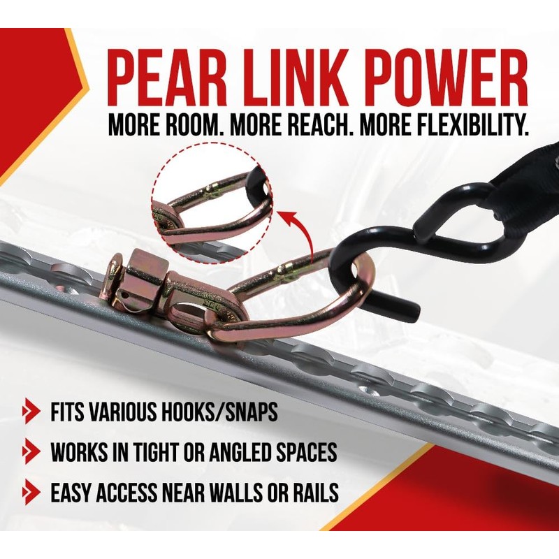 - PEAR LINK DESIGN – Large pear-shaped ring allows easy attachment of various hooks and straps; ideal for tight or angled setups.