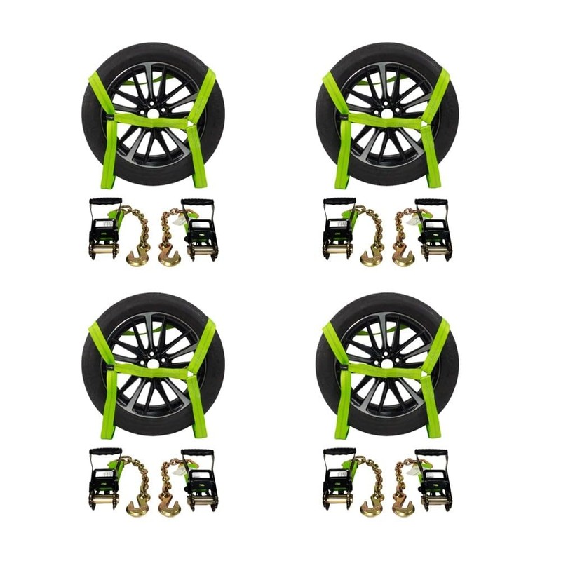 - Conatins - This tow strap for car contains set of 4 pieces, including 4 tire straps & 8 ratchets, providing a comprehensive solution for securing multiple tires and ensuring a reliable tie-down system.