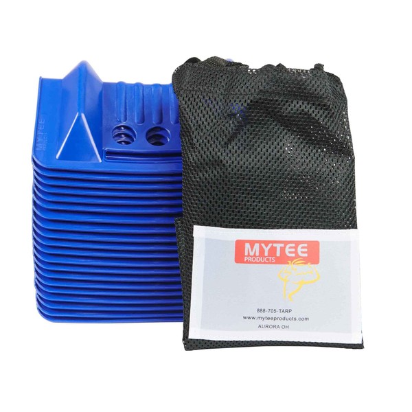 Mytee Products (80 Pack) 4" x 4" x 10" Blue Corner Protector V Shaped Flatbed Edge Guards with Carrying Case - Cargo Load Corner Edge Protector and Tie-Down Strap Guard for Flatbed