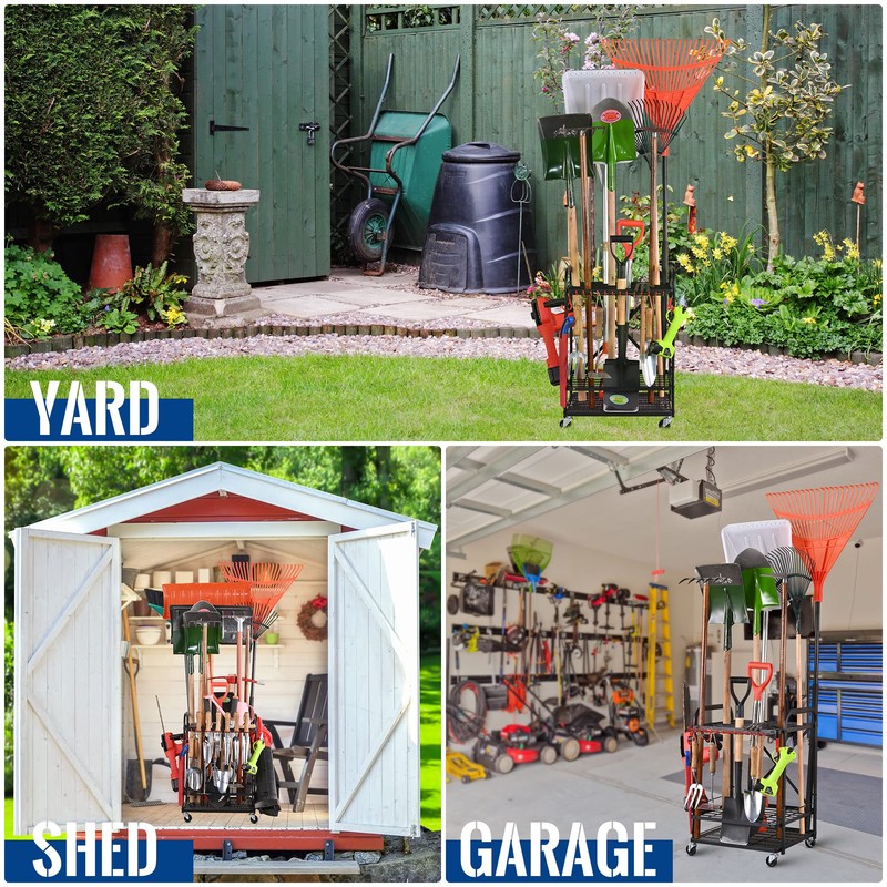Mythinglogic Garden Yard Tool Organizer for Garage with Wheels, Yard Tool Racks Garage Organizers and Storage,Tool Holder for Garage Yard Shed, Garden Tool Stand