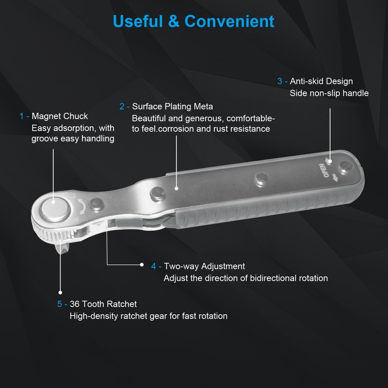 - Reversible Ratchet Mechanism: 36-tooth alloy steel reversible ratchet system that ensures smooth two-way ratcheting and precise adjustment; Just a simple push converts the right and left rotation of the screwdriver to quickly switch from tightening to loosening screws.