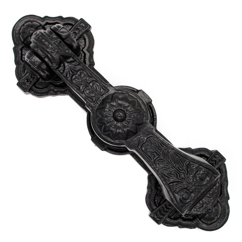 Mythrojan Black Powder Coated Decorative Front Door Artisan Made Antique Knocker
