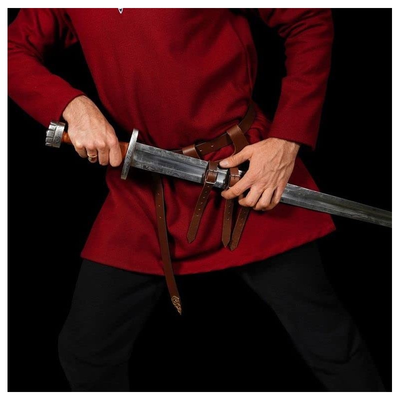 - ⭐ VERSATILE & IDEAL FOR MANY CHARACTER TYPES (Historical or Fantasy): This Mythrojan 6”×5” (15.2cm×12.7cm) frog will be the perfect companion for all your adventures. Whatever your favorite universe or character, its authentic look and sturdy and reliable leather will make the difference! Ideal for Viking and Norman swords, LARP swords, medieval arming swords, longswords, and rapiers. It is worn on the left side by RIGHT-HANDED PEOPLE.
