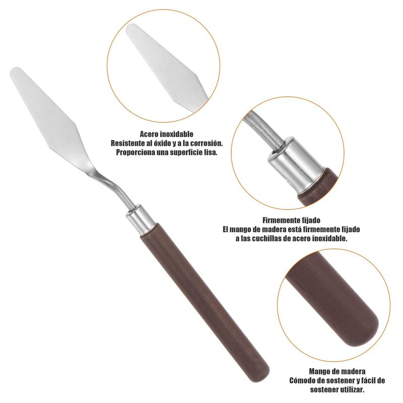 - 【Mango de buen agarre】: Excelente tacto de la mano y trabajo libre. El mango de diseño ergonómico agrega comodidad y agarre a cada aplicación, el cuchillo de pintura es adecuado para principiantes, entusiastas y artistas. lo que hace que pintar sea más fácil y natural.