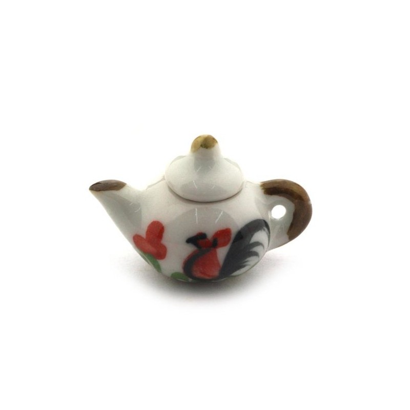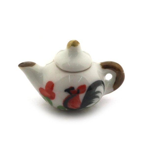 Cockerel Motif ceramic teapot. Perfect for dolls house, ideal as miniature charms for charm bracelets.