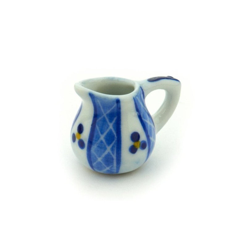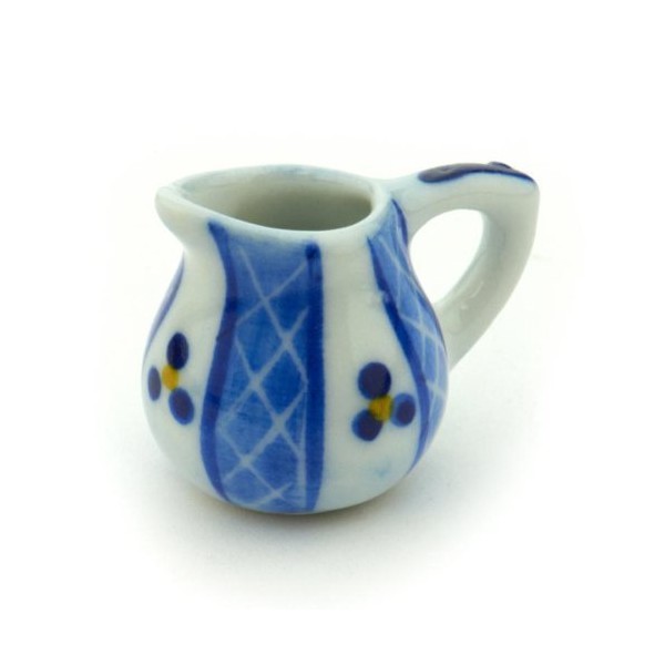 MyTinyWorld 2 x Dolls House Miniature Blue Lace Design Ceramic Round Water Jugs