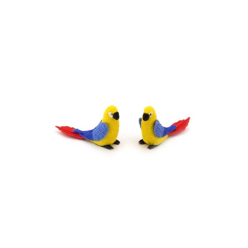 MyTinyWorld 2 Yellow Dolls House Miniature Parrots with Blue Wings and Red Tail