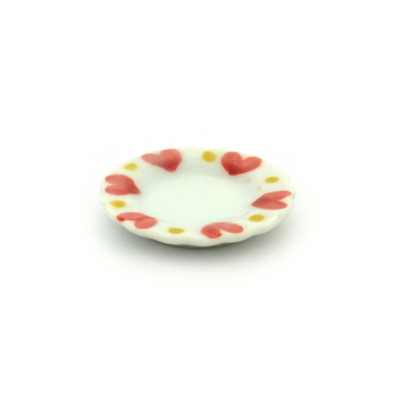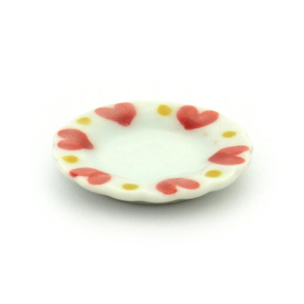 MyTinyWorld 4 x Dolls House Miniature Heart Pattern Ceramic 22mm Plates